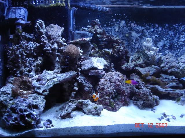 I have not posted any updated photos in a long time so here are a few. I am haveing a small fight with hair because I think my yellow watchman died some where in the back of the tank and shot up my nitrates. I have been doing several water changes and I think I am getting the best of it between my fuge and WC's