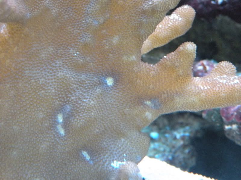 Our devil's hand doesn't look to hot today...no pun intended. We noticed some spots out on some of the "fingers" and "palm". Our temp in our main tank ( 100g ) did reach 84 today...that may or may not be the problem, but we're looking into getting a chiller...I just wanted to check with everyone to see if the rising temperature may or may have not been a problem or if it were something else?? thoughts ??