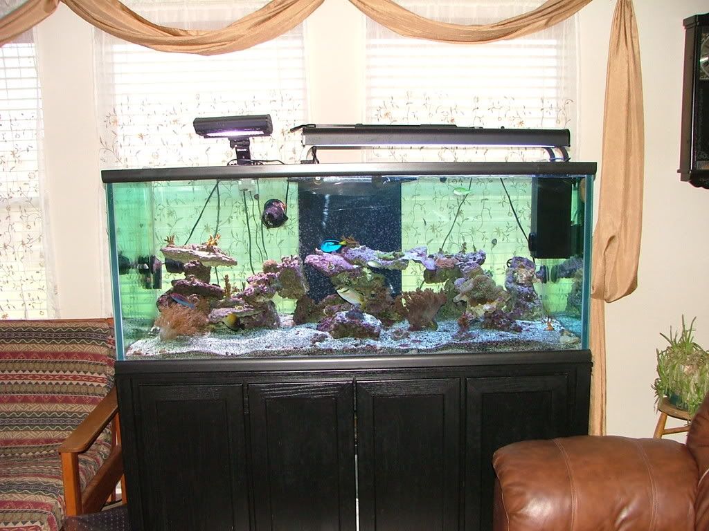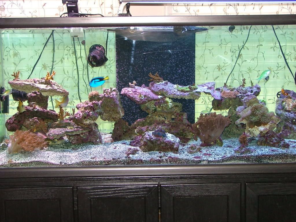 Cool tank. The only thing I can see that could be changes is the back. You did not paint or put on any type of background, this creates depth and makes your livestock really pop. Plus you have it in front of windows; that could lead to heat issues and algae problems.