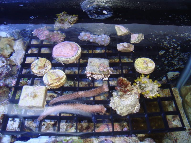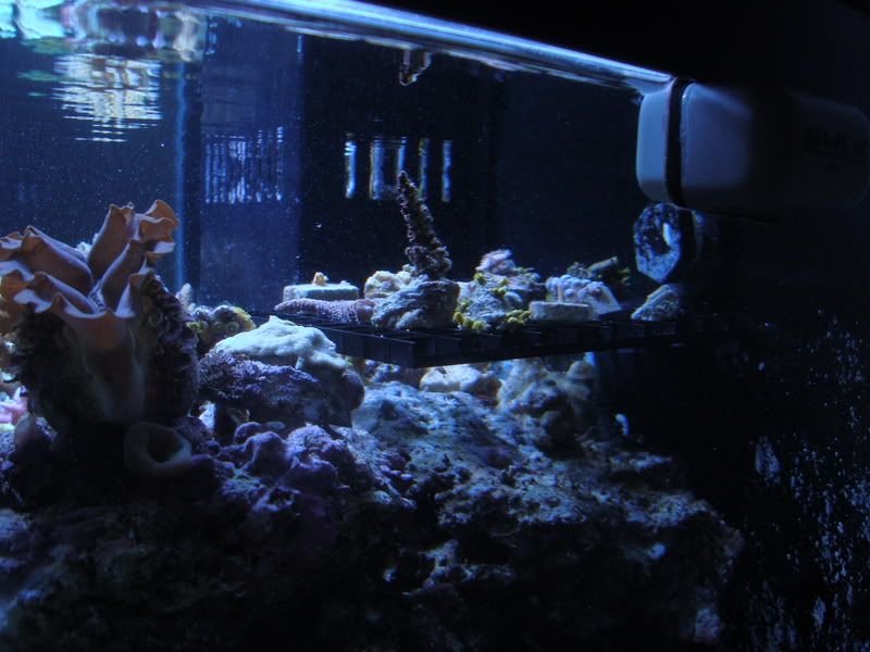 yes, the frag rack is in the tank in this pic. I wanted it to be as out of sight as possible. It worked out pretty well I think. Now I don't have frags all over the sandbed in my tank.