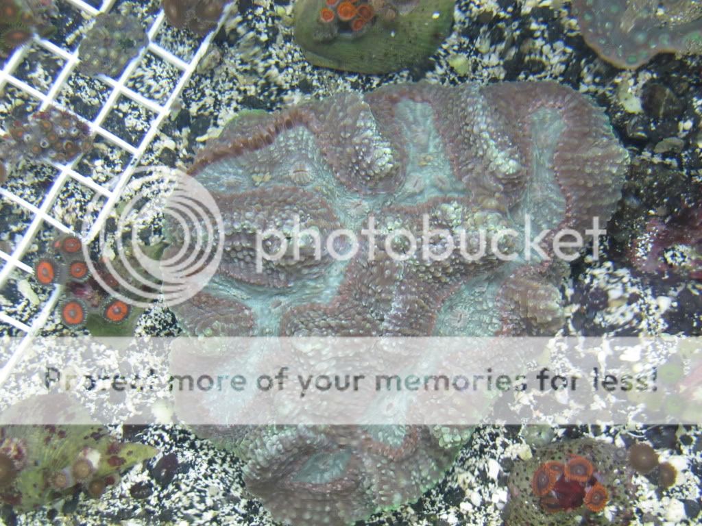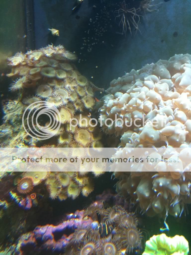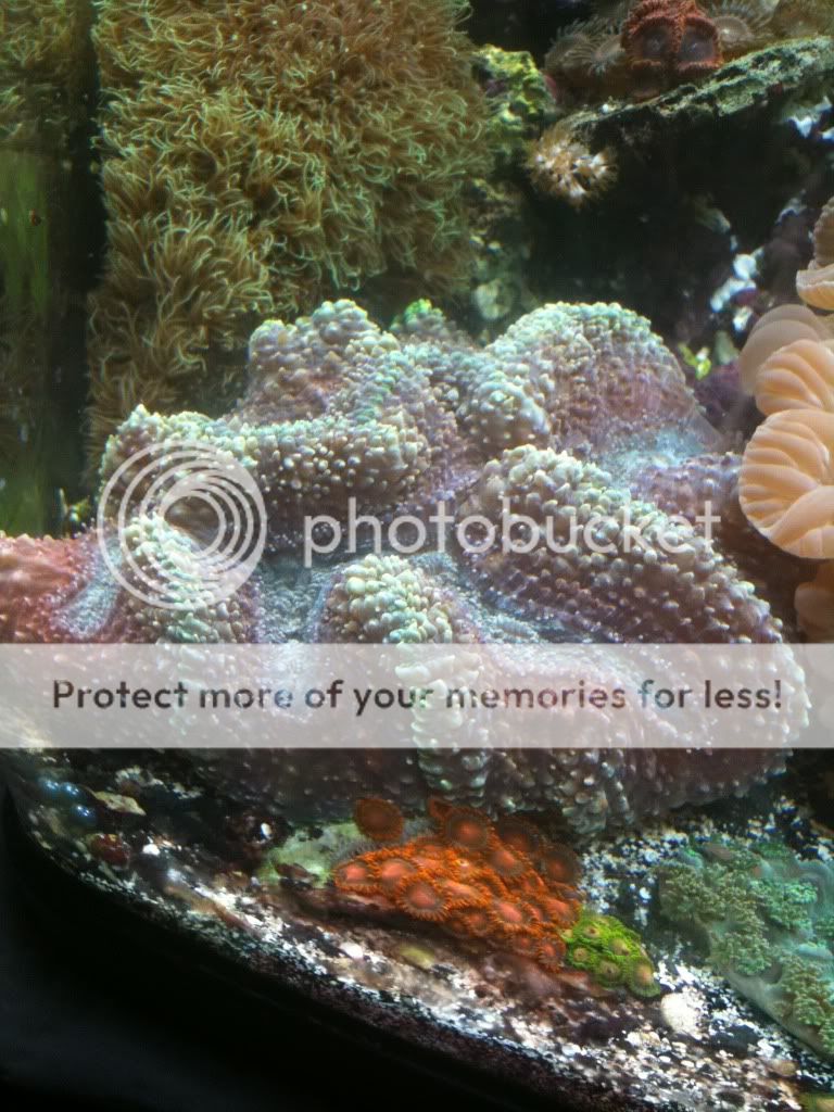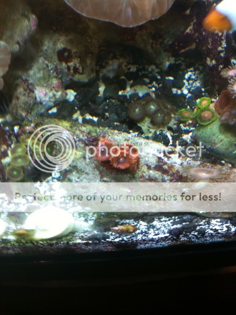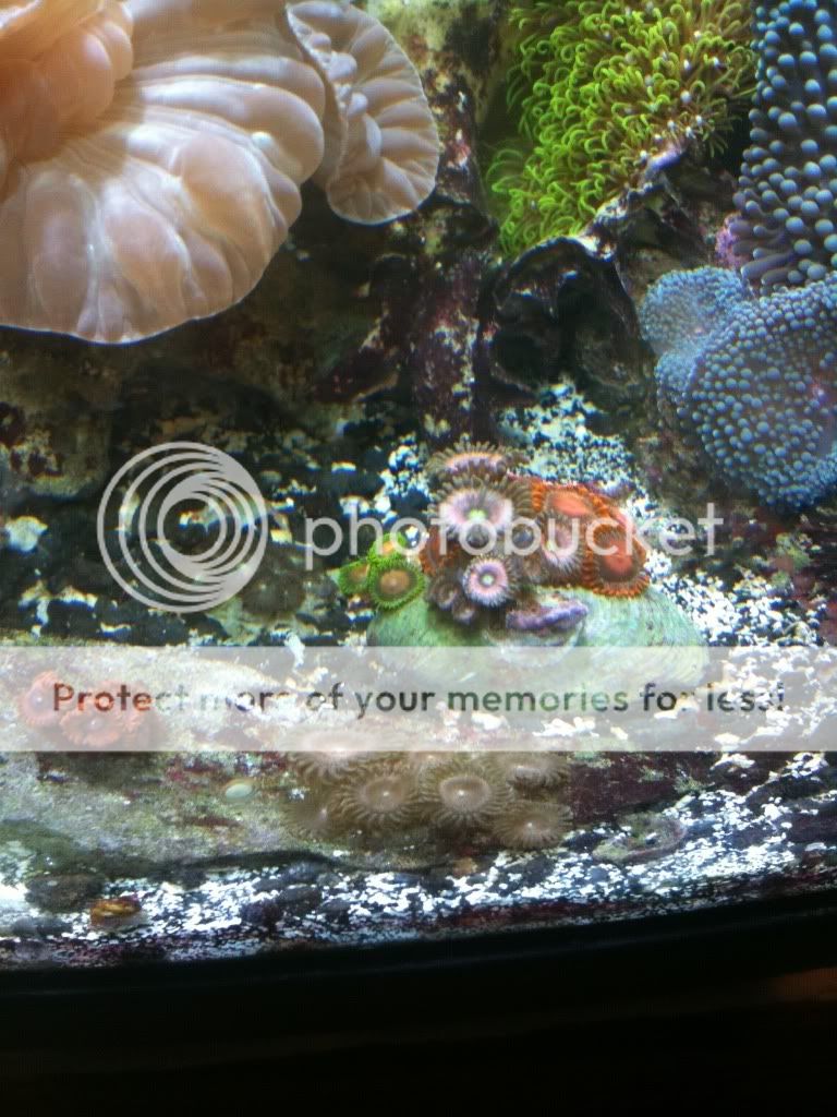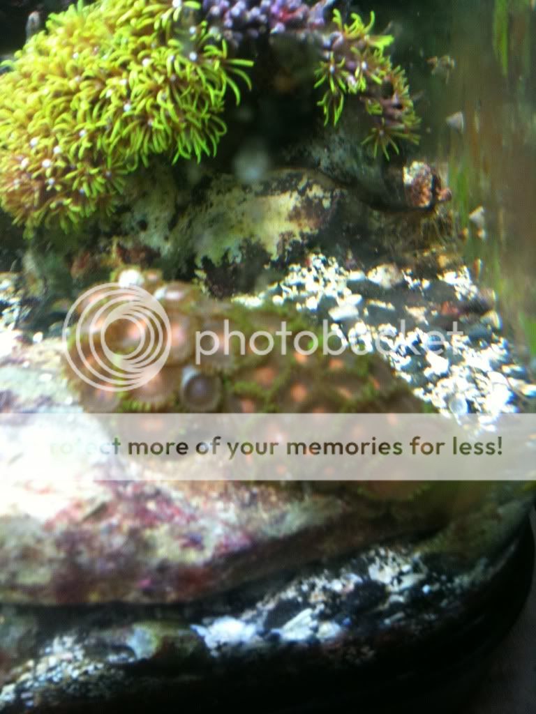 Zoa shell (pink eyes, orange bam bams (i think, and misc. yellow)) I started, it has grown in nicely. Pictured behind tangerine sprinkles